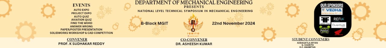 IGNITO is a Technical fest organized by the students of Mechanical Engineering. This event will enhance the skills by the means of various workshops and events conducted. Students will get exposure with industry peoples.