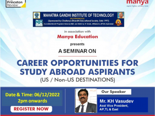 CGC, MGIT in Association with Manya Education, organized a Seminar on “Career Opportunities for Study Abroad Aspirants” on 06/12/22 at 2 PM.