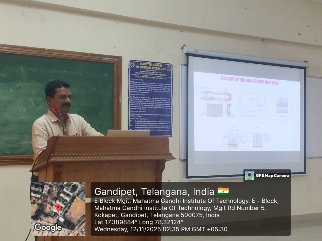 Dr. K. Ramanajaneyulu, HoD, MME, highlighted the importance and growing relevance of high-temperature coating technologies for MME students in modern engineering applications.