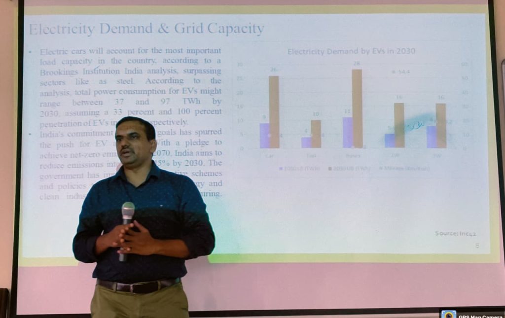 In his address, Dr. Ram Babu discussed various aspects of electric vehicle technology, including carbon emission and reduction potential, battery management systems, grid capacity challenges, and real-time industry case studies. He also highlighted the impact of EVs on electricity demand and the emerging challenges in the electric mobility sector.