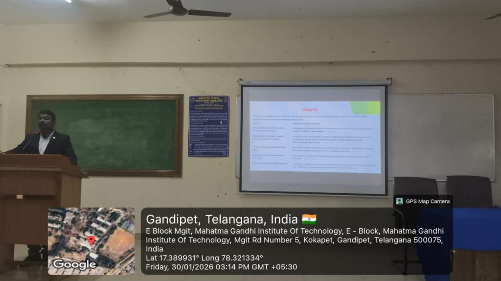 The Department of Civil Engineering, in association with the Institute Innovation Council (IIC), Mahatma Gandhi Institute of Technology (MGIT), organized an Expert Talk on 30th January 2026.