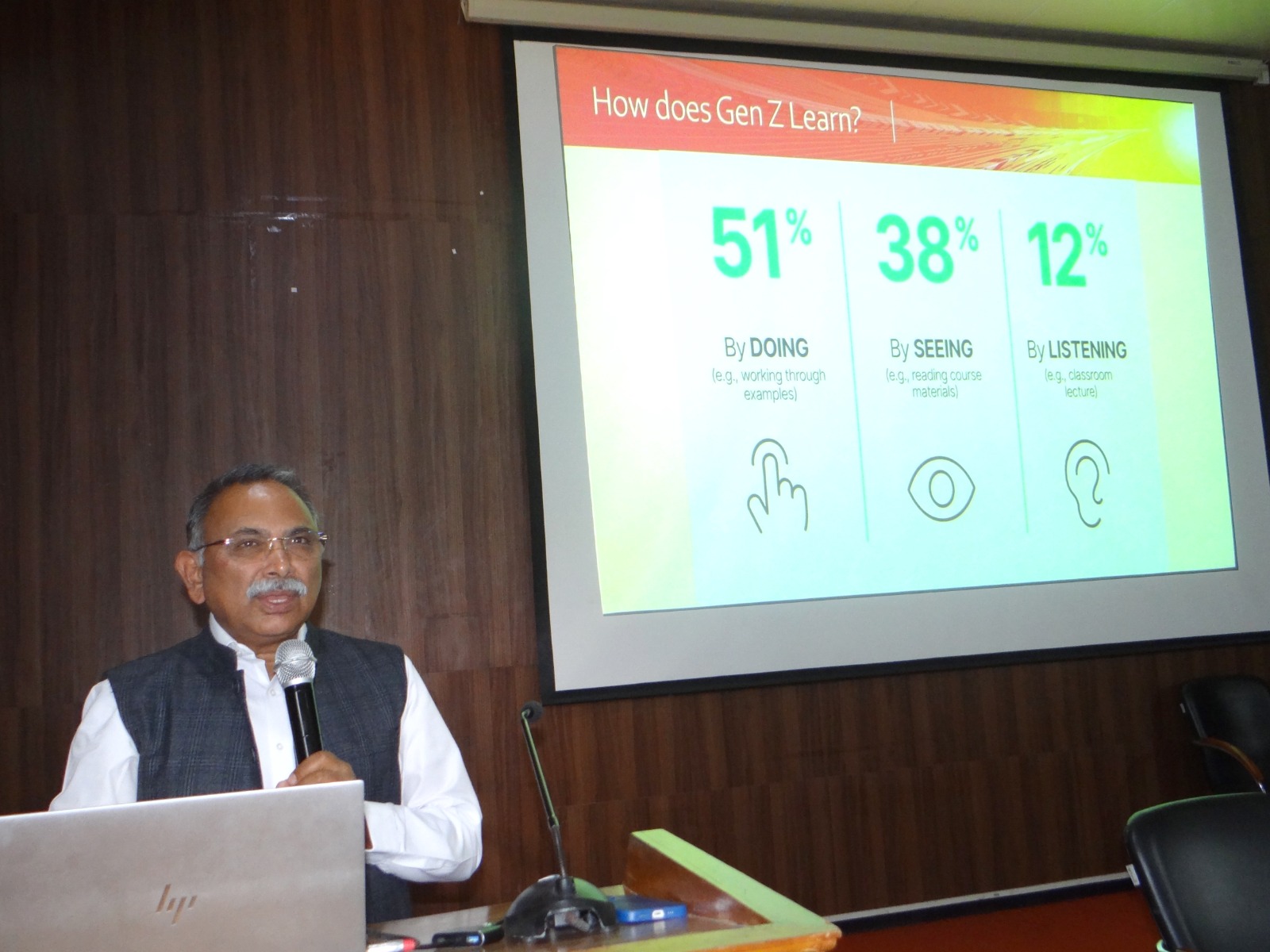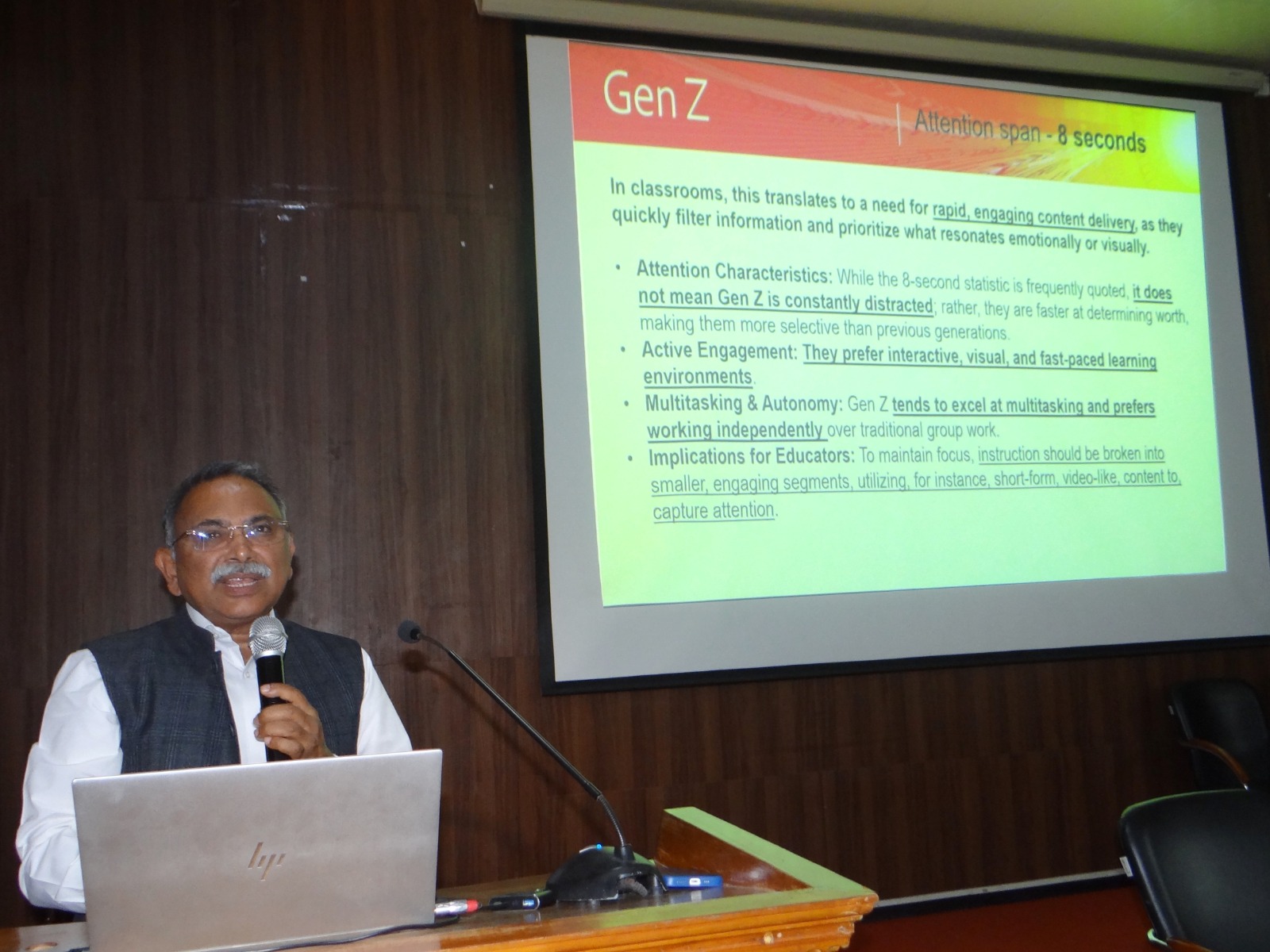 The second session was led by Prof. (Dr.) K. Karunakaran, Former Vice Chancellor, who elaborated on the evolving role of educators as facilitators. He stressed the adoption of innovative, student-centric teaching strategies to improve learning outcomes and foster critical thinking among students.