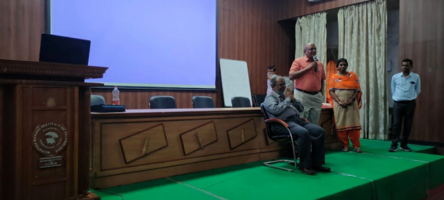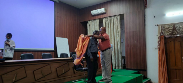 Towards the end of the programme, Prof. G. ChandraMohan Reddy felicitated the guest speaker with Shaal and appreciated him for his valuable time and enlightening lecture. Dr. Harileela, Associate Professor, Dept. of M&H presented a bouquet, and Dr. K. Srihari, Assistant Professor, Dept. of M&H handed over a memento to the guest as a token of respect.