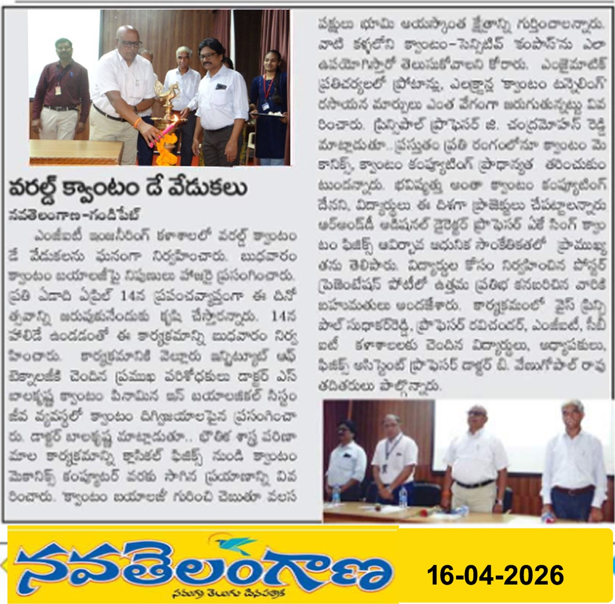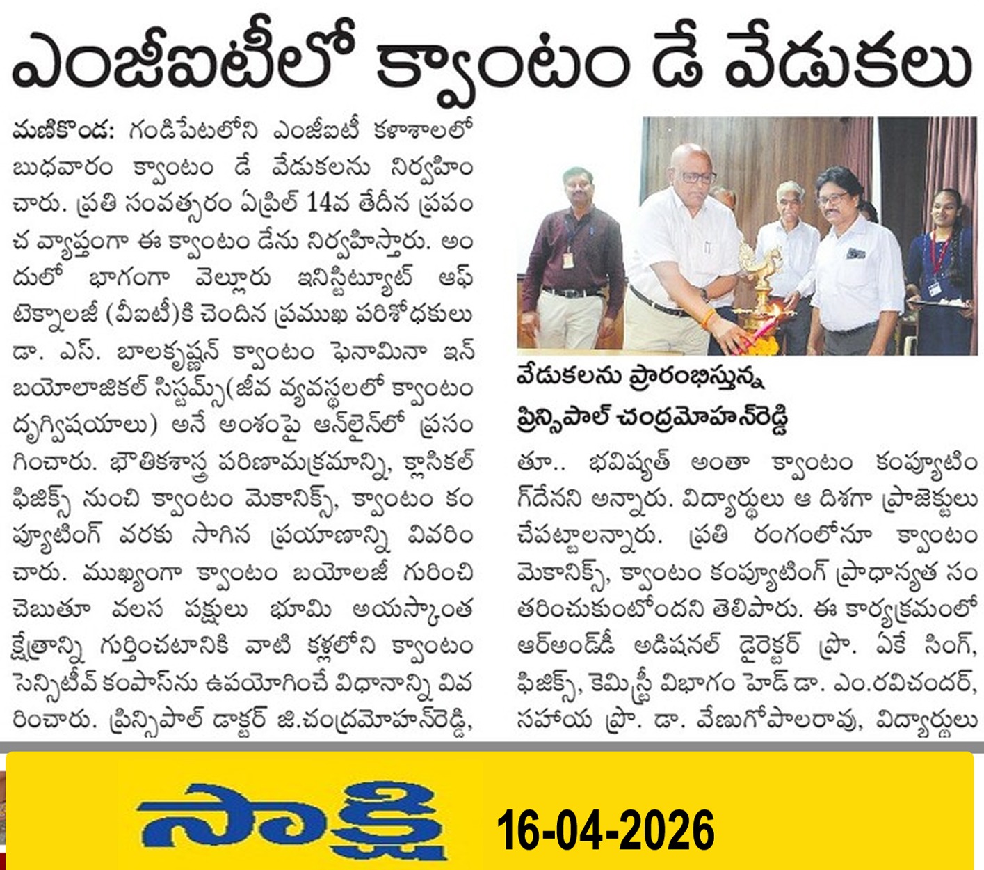 The Mahatma Gandhi Institute of Technology, Gandipet, observed World Quantum Day with an academic program aimed at promoting interdisciplinary learning and research awareness among students.