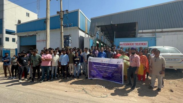 The Institution’s Innovation Council (IIC) of MGIT recently organized a field visit to M/s Fusion Heat Treatment in Patancheru on February 13, 2023. The visit was part of Quarter-II activities and events scheduled by MoE’s IIC. Mr. Sarath Subramanyam, an alumnus of MGIT, addressed about 60 students from the Mechanical, Mechatronics, EEE and MME branches. He explained how the process of heat treatment is carried out and how it affects different metals, ceramics, and polymers while using various applications and equipment.