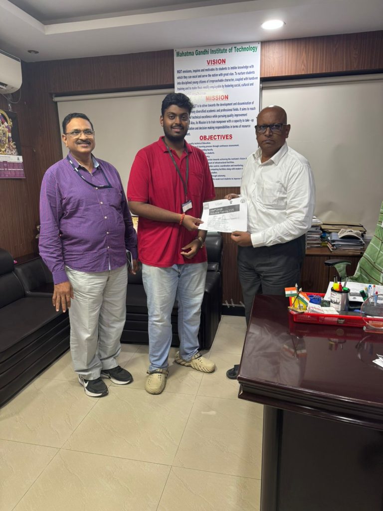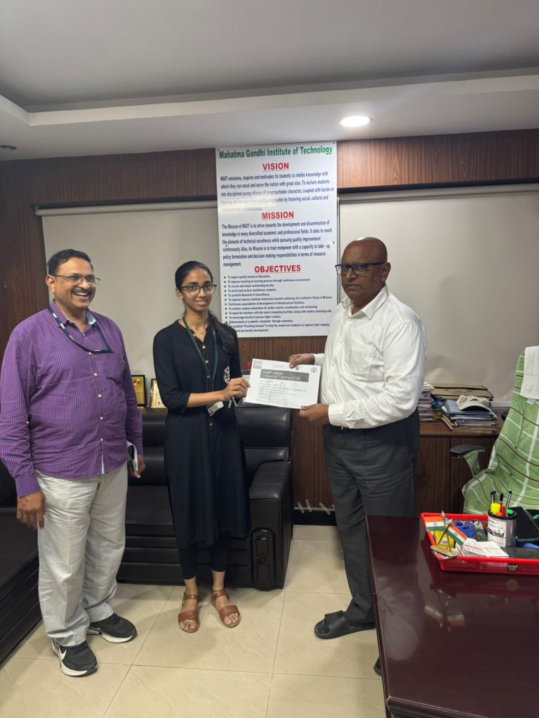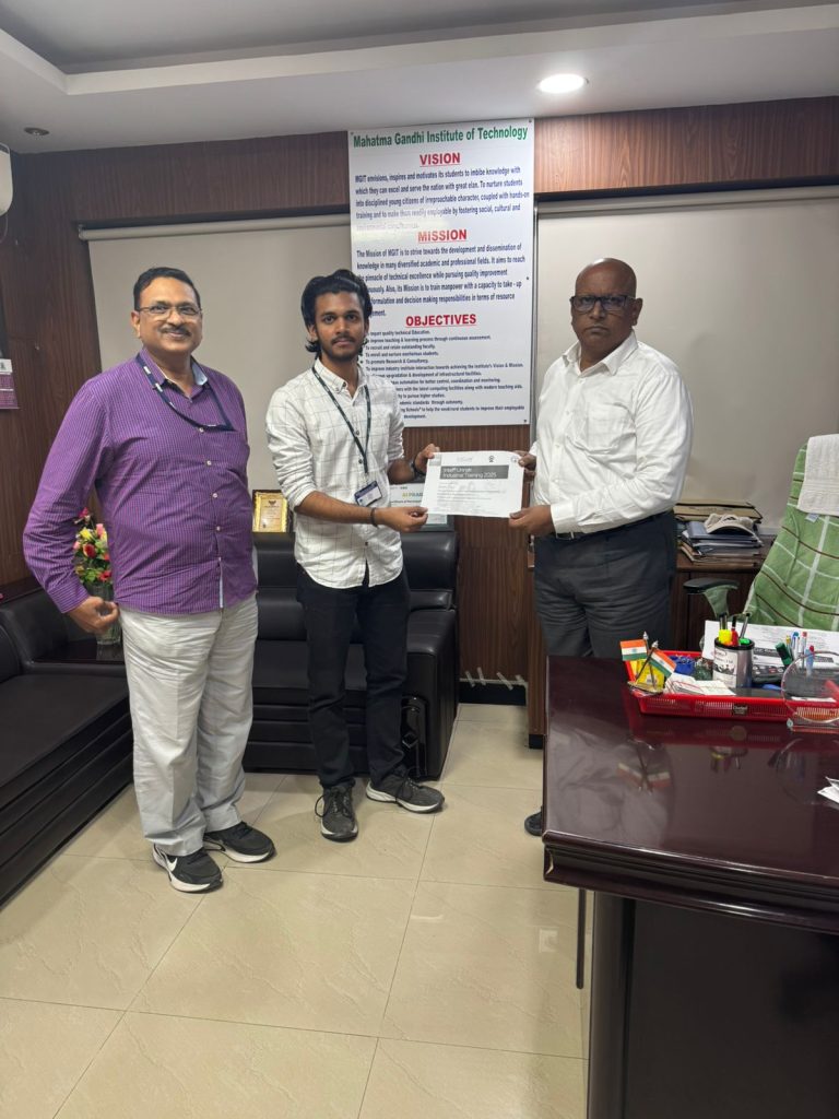 The Principal of MGIT, Prof. G. Chandramohan Reddy, has initiated a collaboration with Intel through the prestigious Intel Unnathi Industrial Training Program – Summer Internship 2025. As part of this initiative, two student teams from the CSM Branch, Department of Emerging Technologies, were selected to participate.