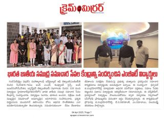 On April 3, 2025, a group of 120 students from the CSE-AI&ML, Computer Science Engineering (CSE), and Information Technology (IT) branches of Mahatma Gandhi Institute of Technology (MGIT) embarked on an enlightening industrial visit to the Indian National Centre for Ocean Information Services (INCOIS) in Pragathi Nagar, Hyderabad. The visit was spearheaded by Principal Prof. G. Chandramohan Reddy, alongside esteemed faculty members, including Prof. T.V. Rajini Kanth, Prof. M. Ramabai, and Prof. Vijayalakshmi, supported by nine other teachers.