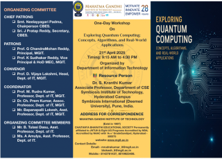 The Department of Information Technology, MGIT, successfully conducted a One-Day Workshop on Quantum Computing Basics exclusively for 2nd and 3rd year students of Computer Science & Business Systems (CSB) and Information Technology (IT) on 21st April 2025.