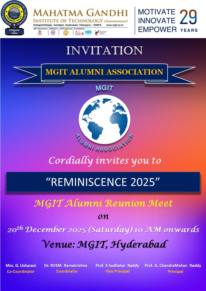 REMINISCENCE-2025: MGIT Alumni Reunion The annual Alumni Reunion Meet, REMINISCENCE…